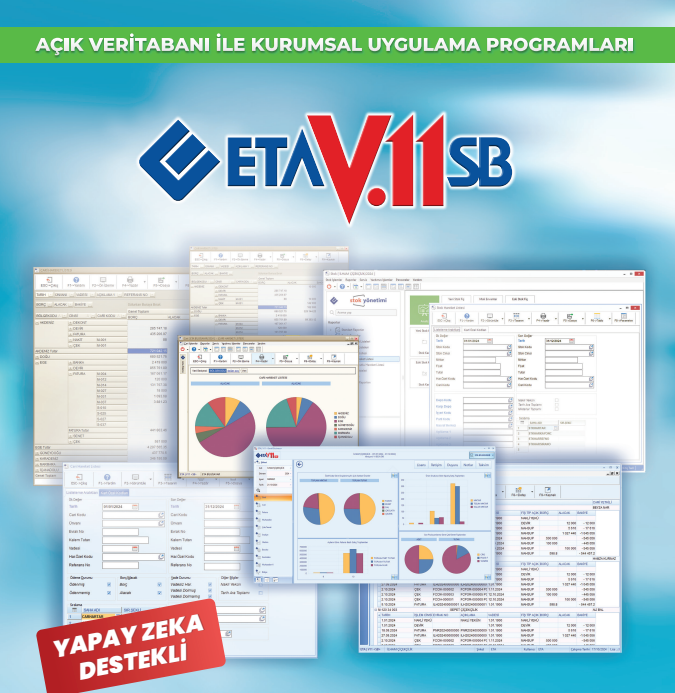 ETA:V.11 SB; kullanıcı dostu arayüzü, modüler ve entegre yapısı, gelişmiş raporlama ve analiz ekranları ile işletmelere büyük kolaylık sağlar. Güvenli veri altyapısı, çoklu şirket yönetimi ve Excel gibi programlarla entegrasyon imkanı sunar. Ayrıca ETA’nın sunduğu eğitim, destek ve yapay zeka destekli hizmetler sayesinde kullanıcılar her zaman profesyonel destek alabilir.